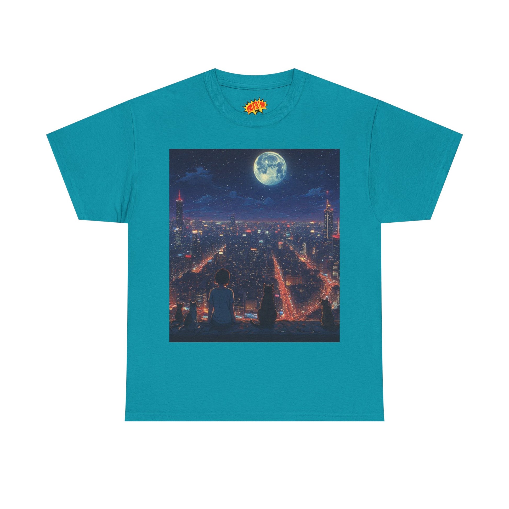 Anime City Neon Night Scene w/Cats T-Shirt *Multiple Colors*