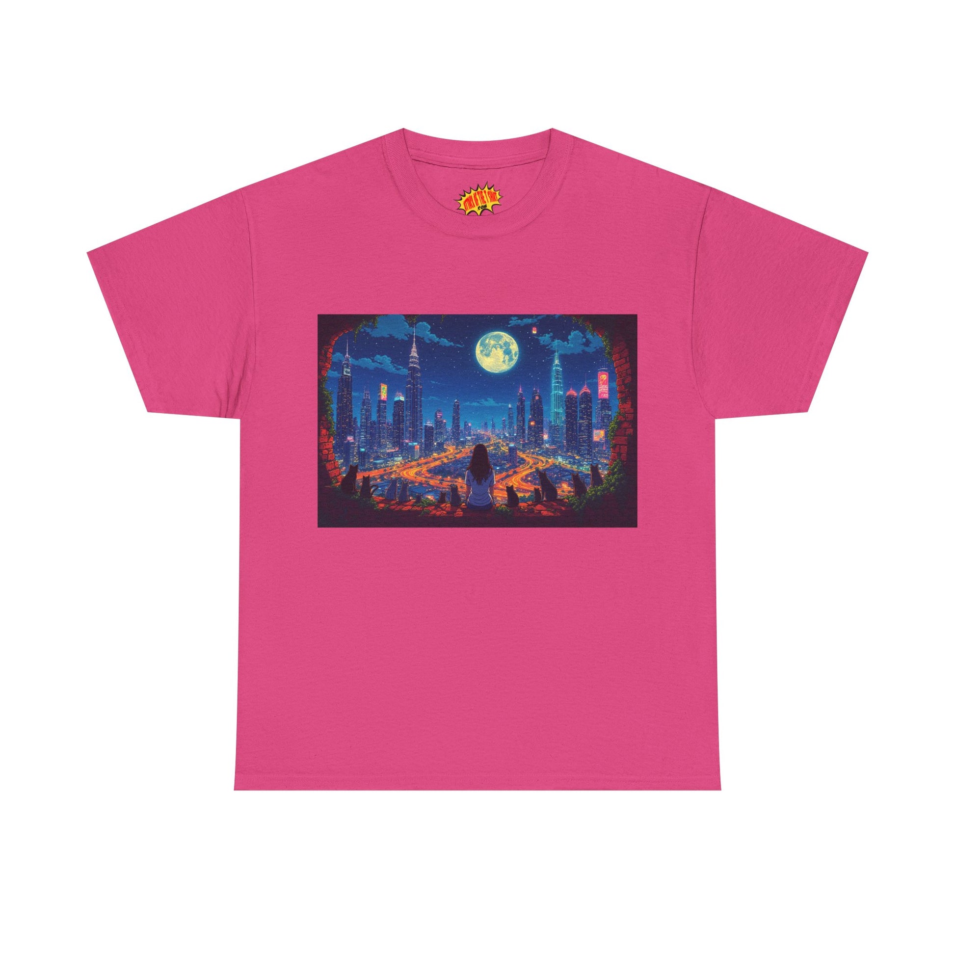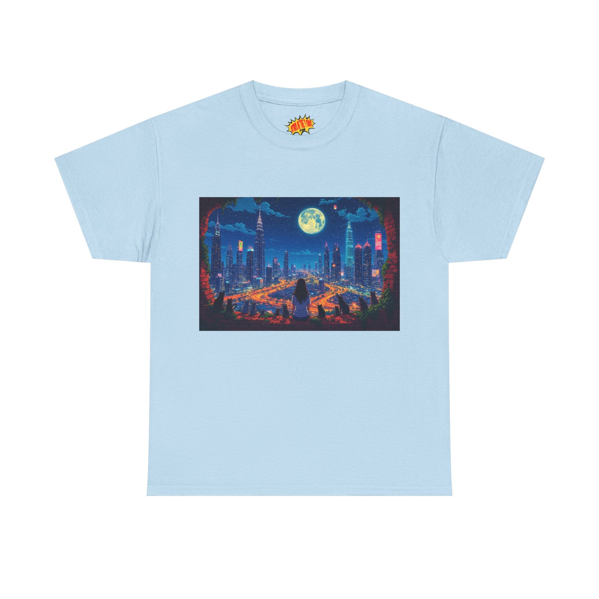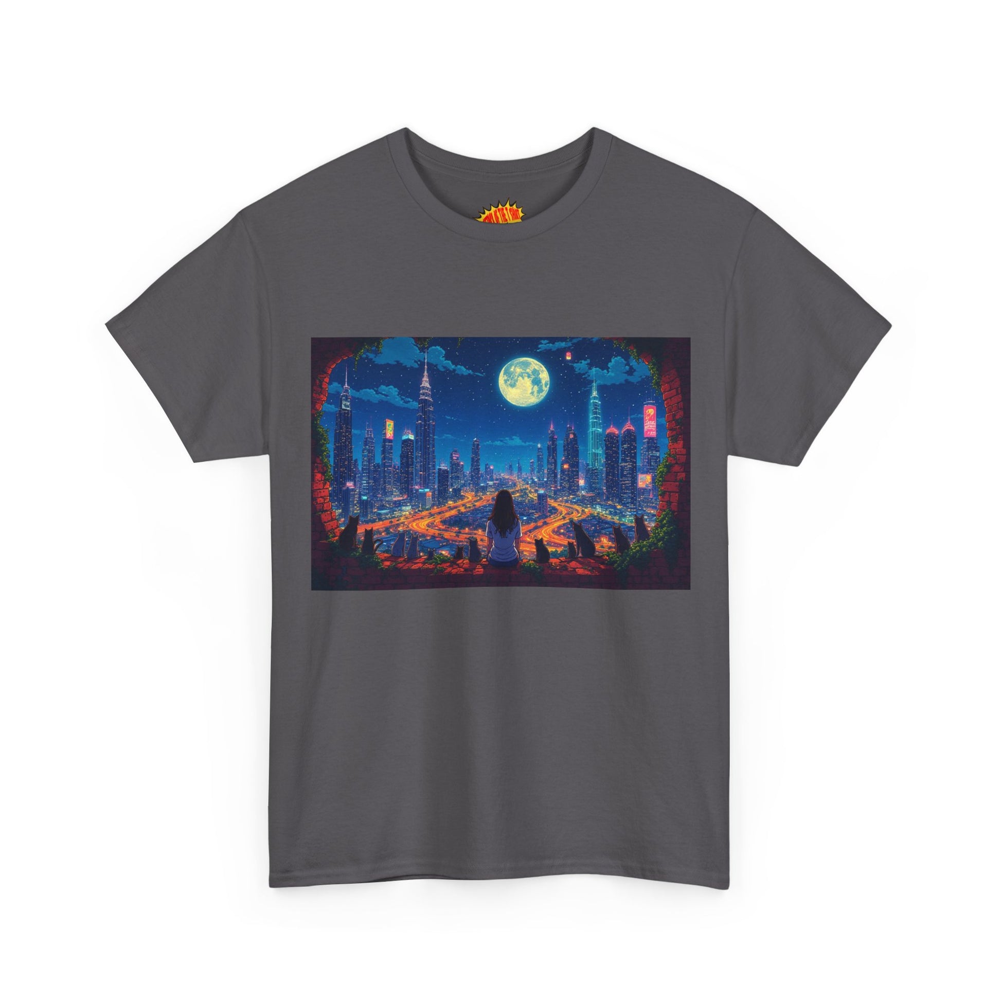 Anime City Night Scene w/Girl & Cats T-Shirt *Multiple Colors*