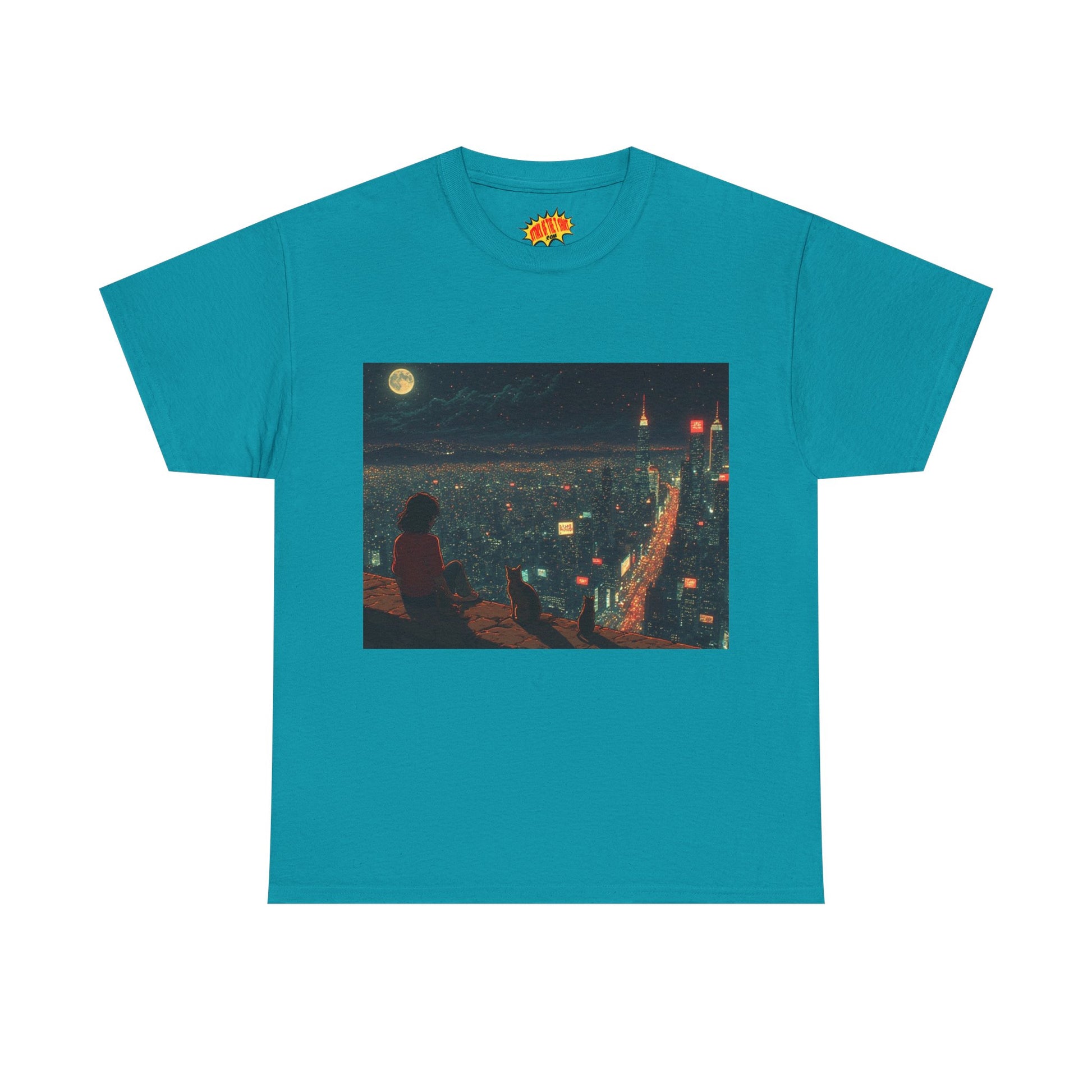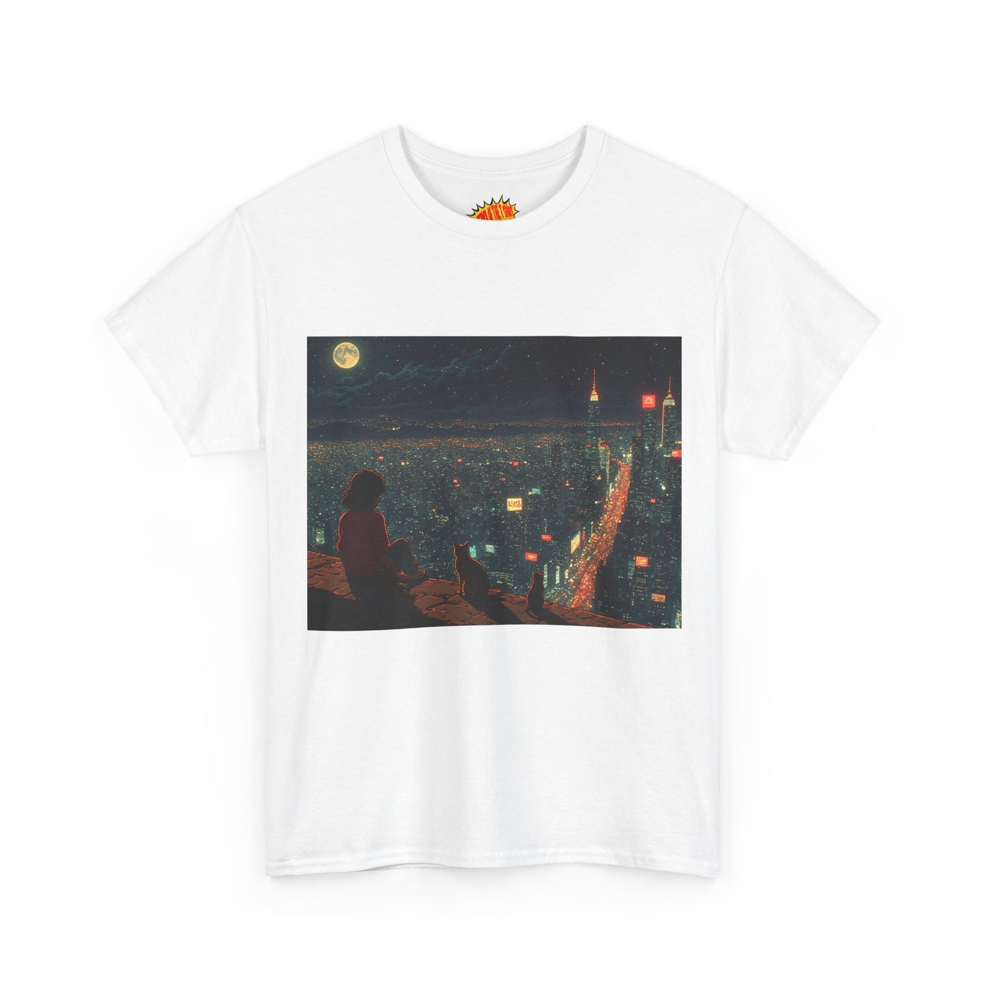 Anime Nighttime Cityscape w/Cats T-Shirt *Multiple Colors*