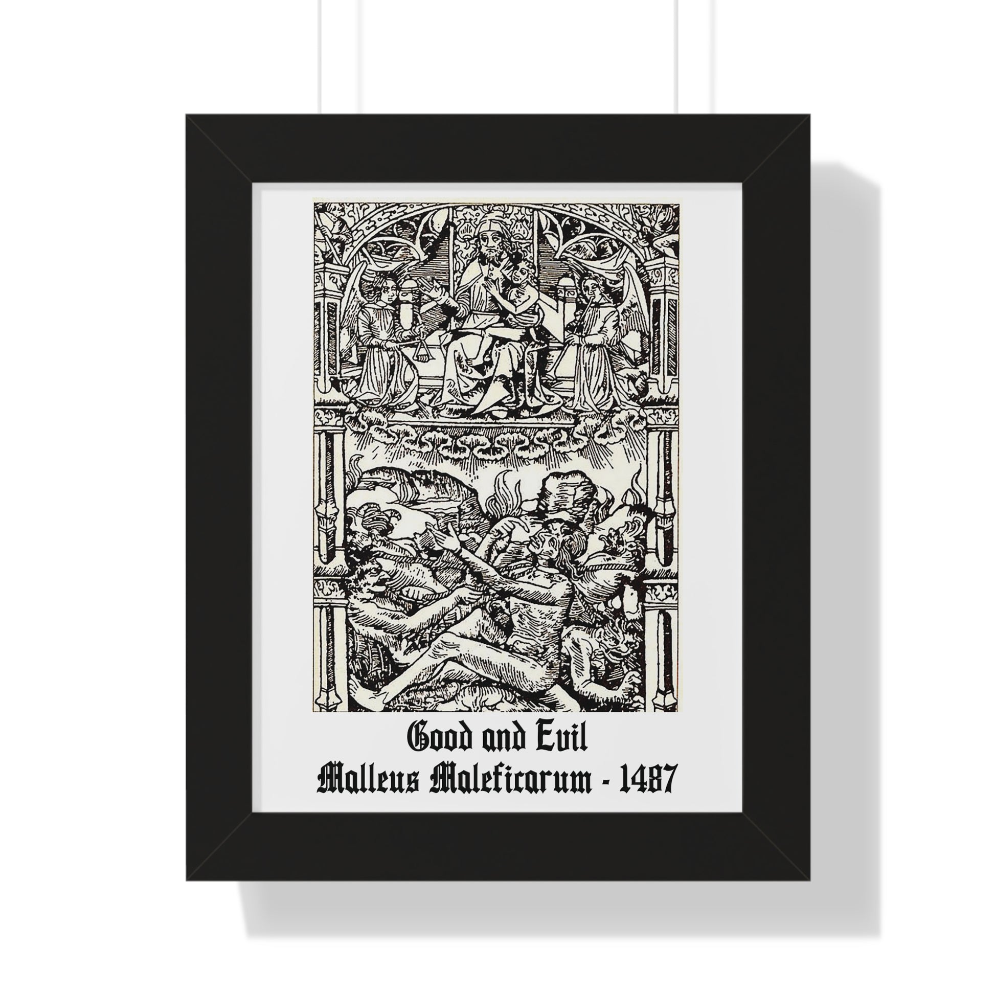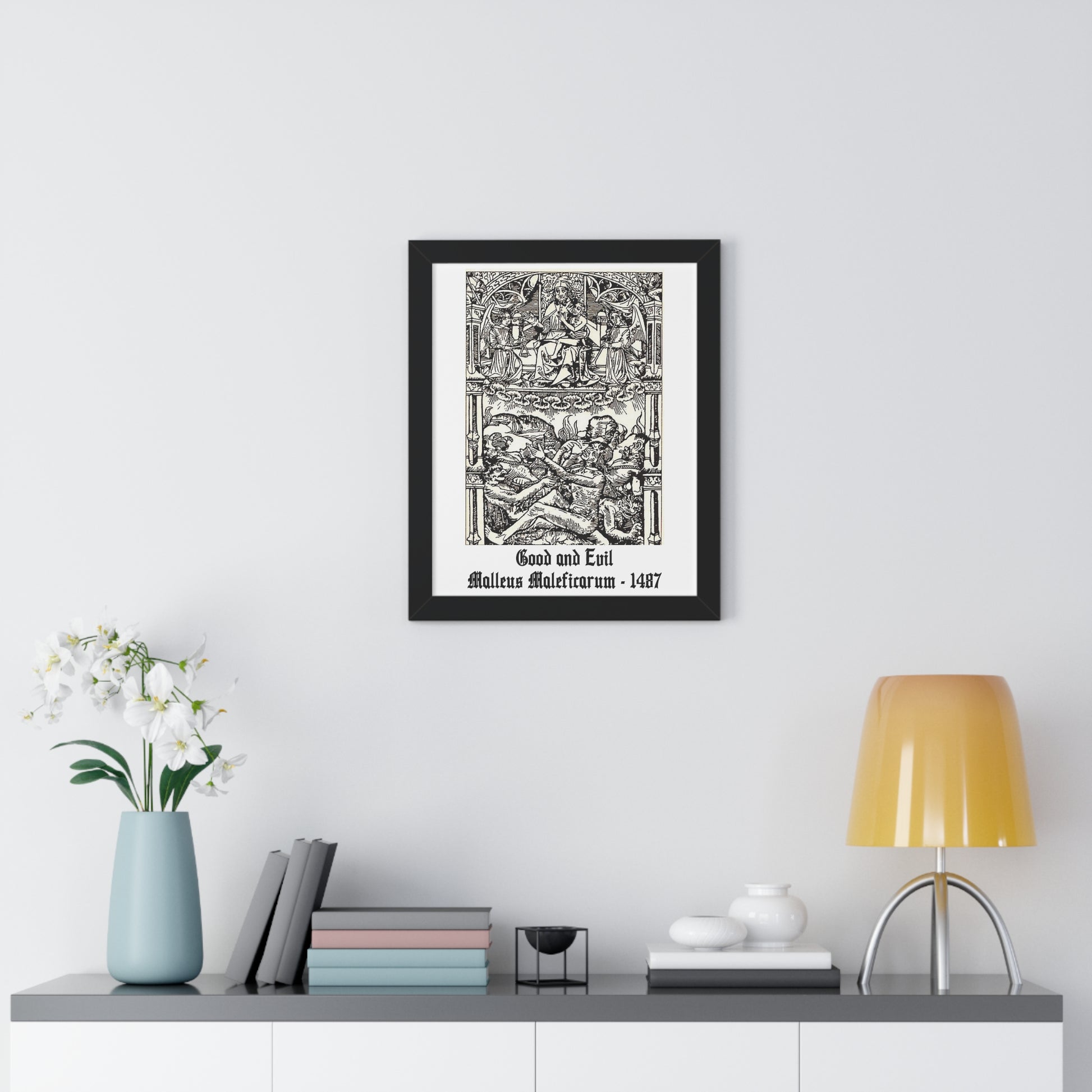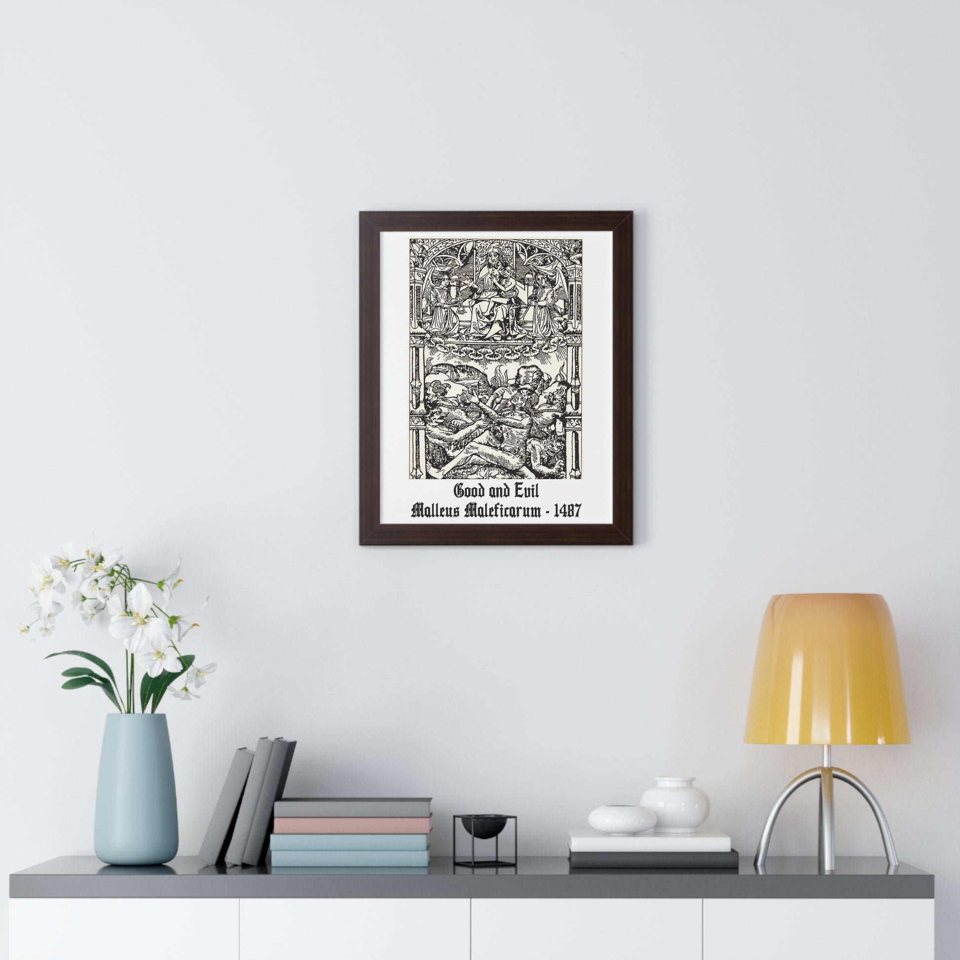 A very nice framed print of "Good and Evil" an illustration from the Malleus Maleficarum, 1487. Made to order, Ships from US.