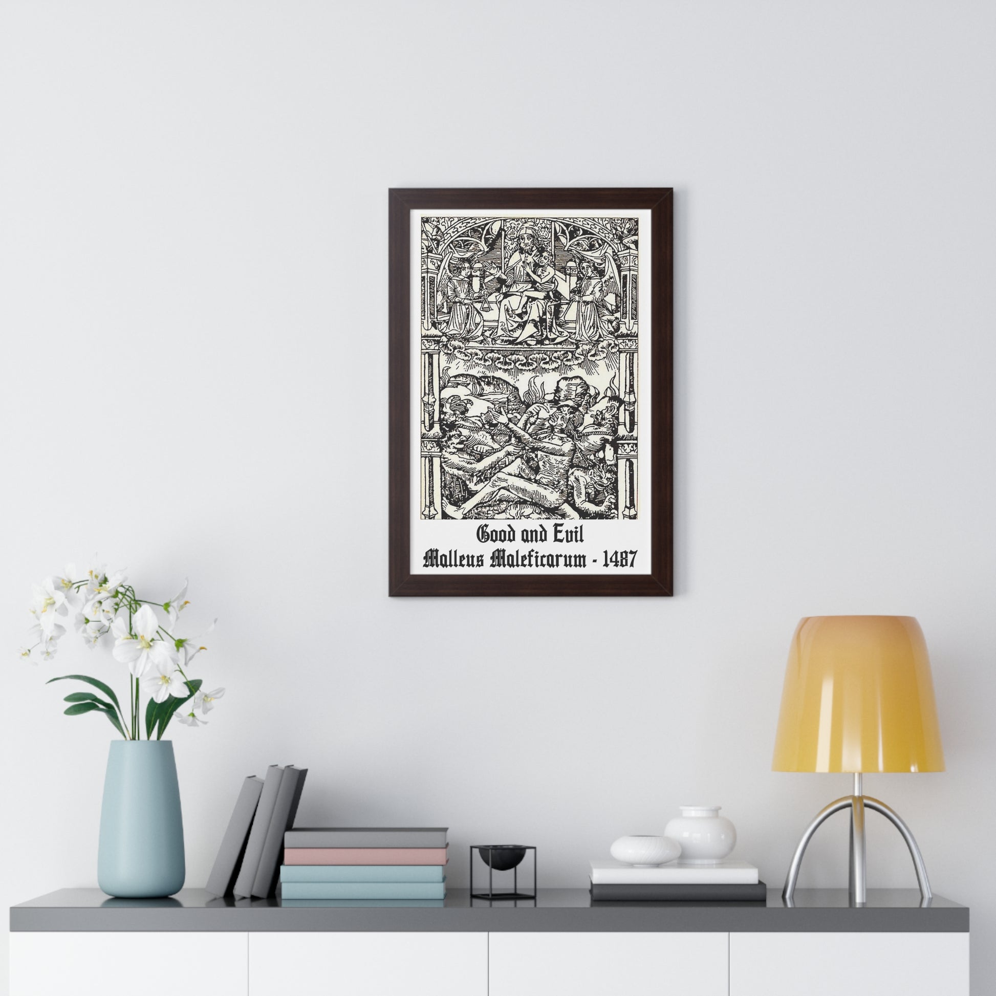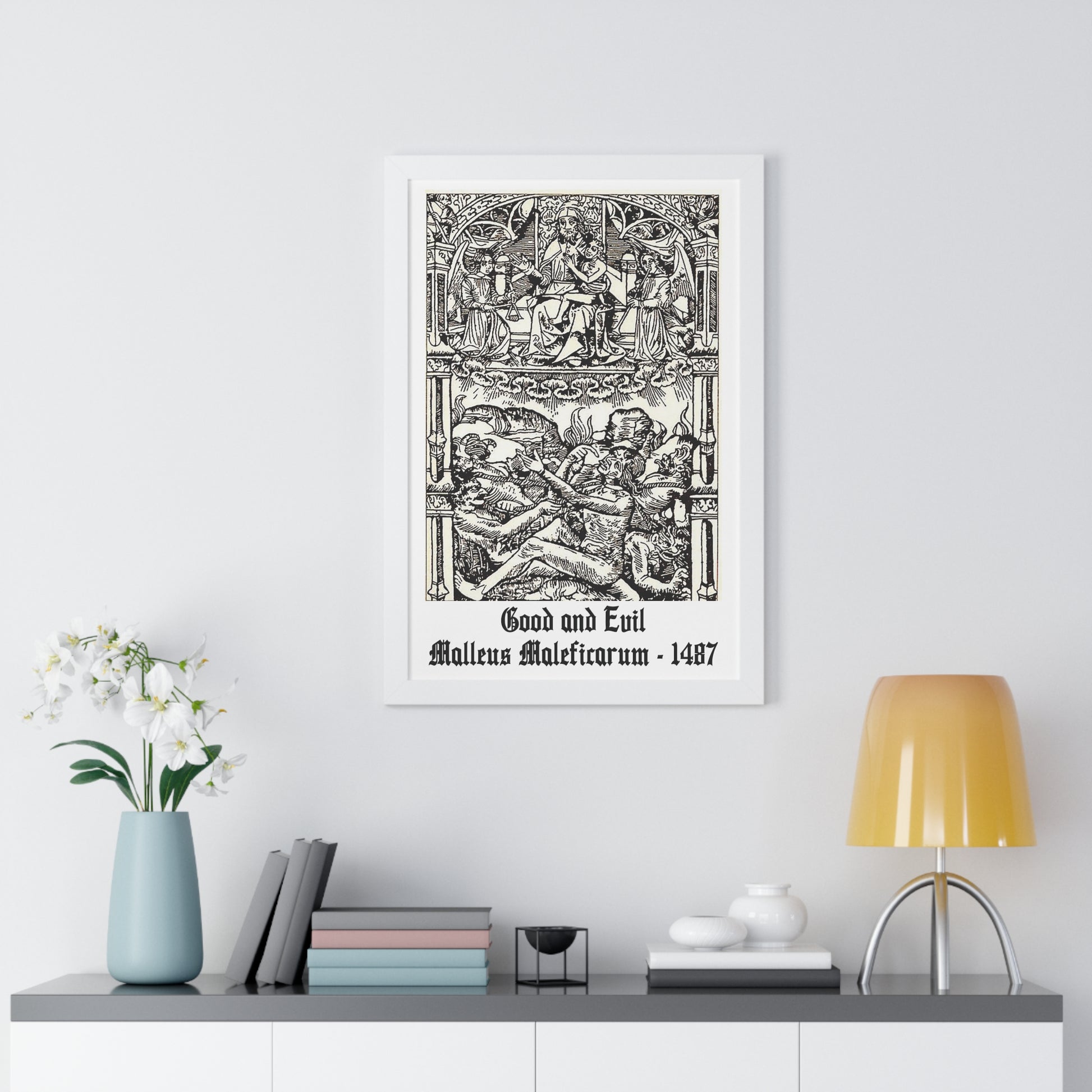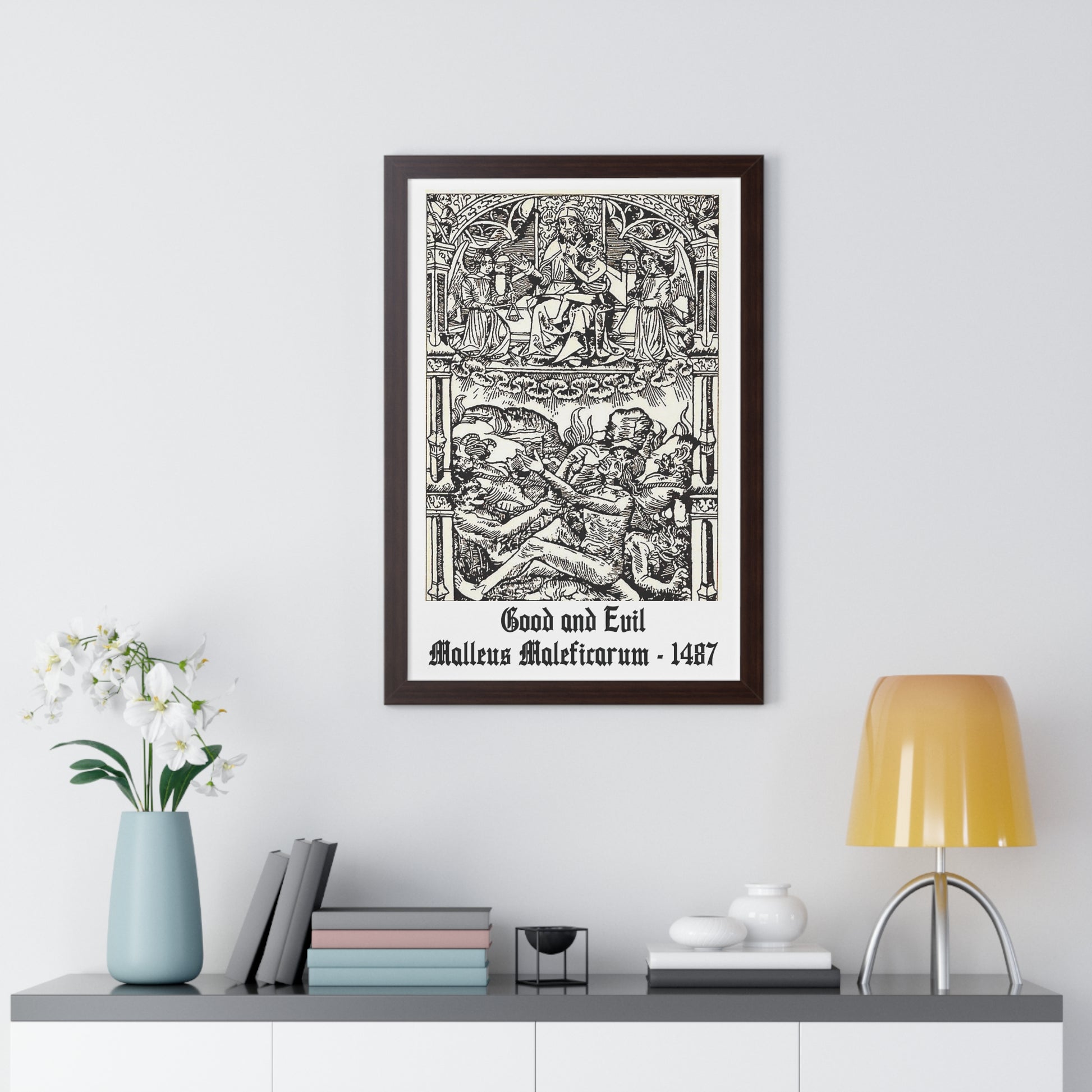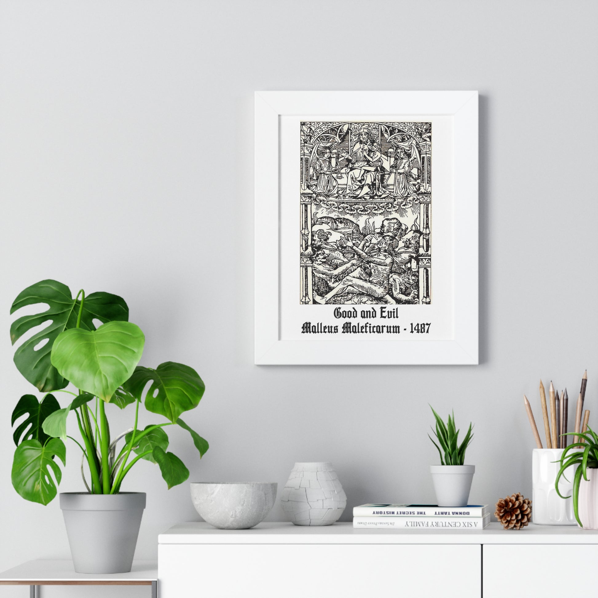 A very nice framed print of "Good and Evil" an illustration from the Malleus Maleficarum, 1487. Made to order, Ships from US.