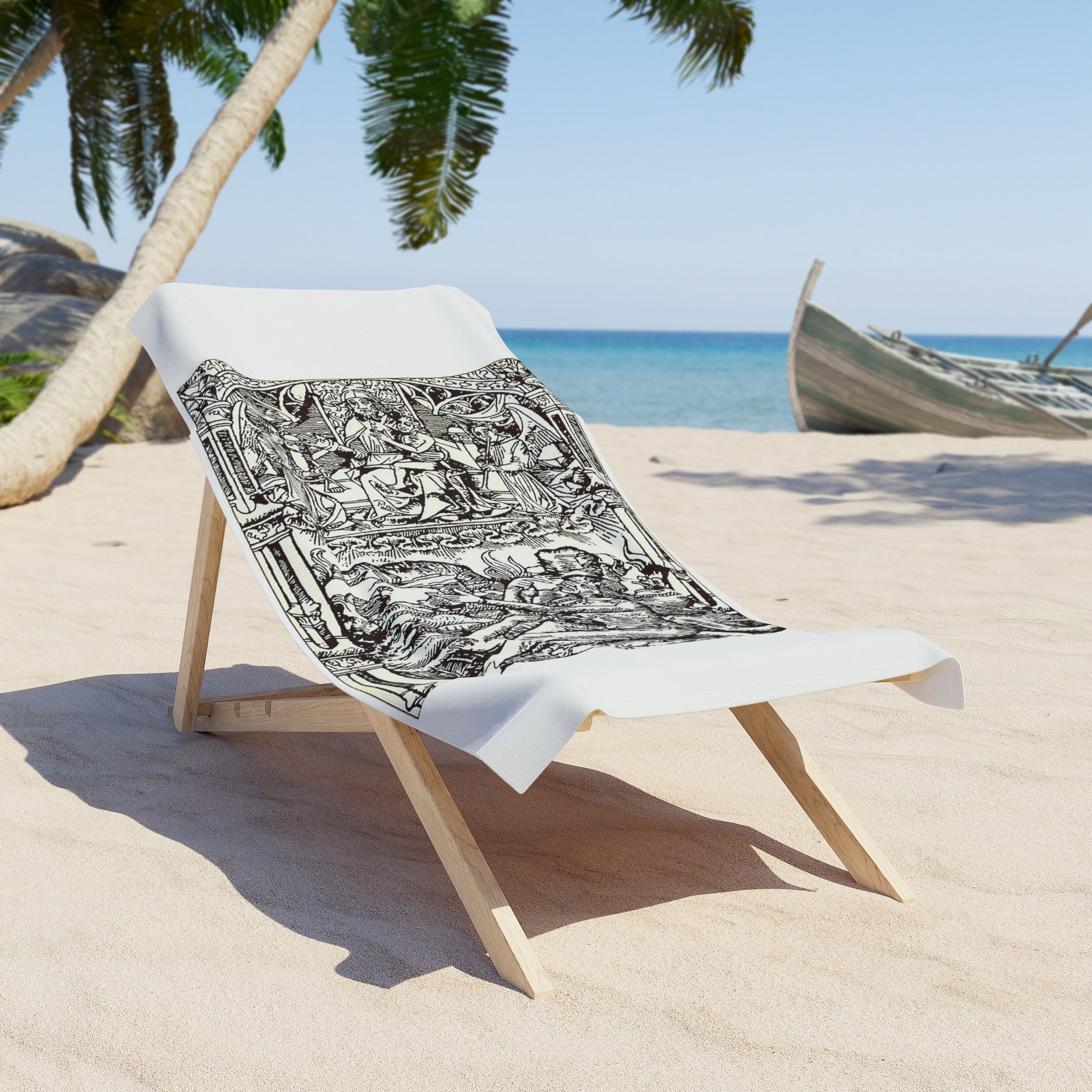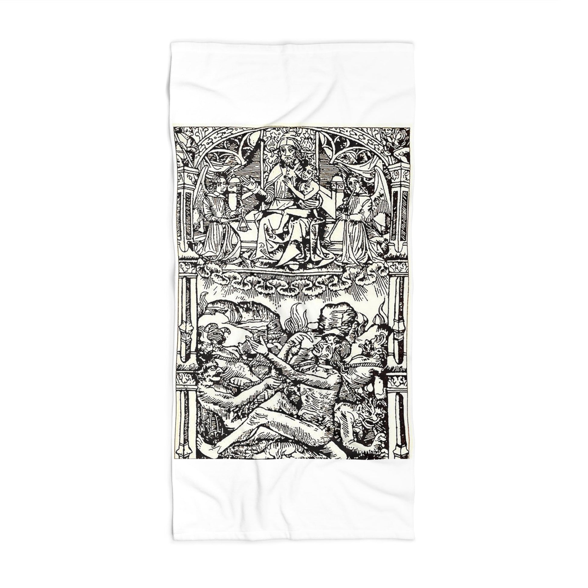 Beach towel featuring Good and Evil from The Malleus Maleficarum. White Background.