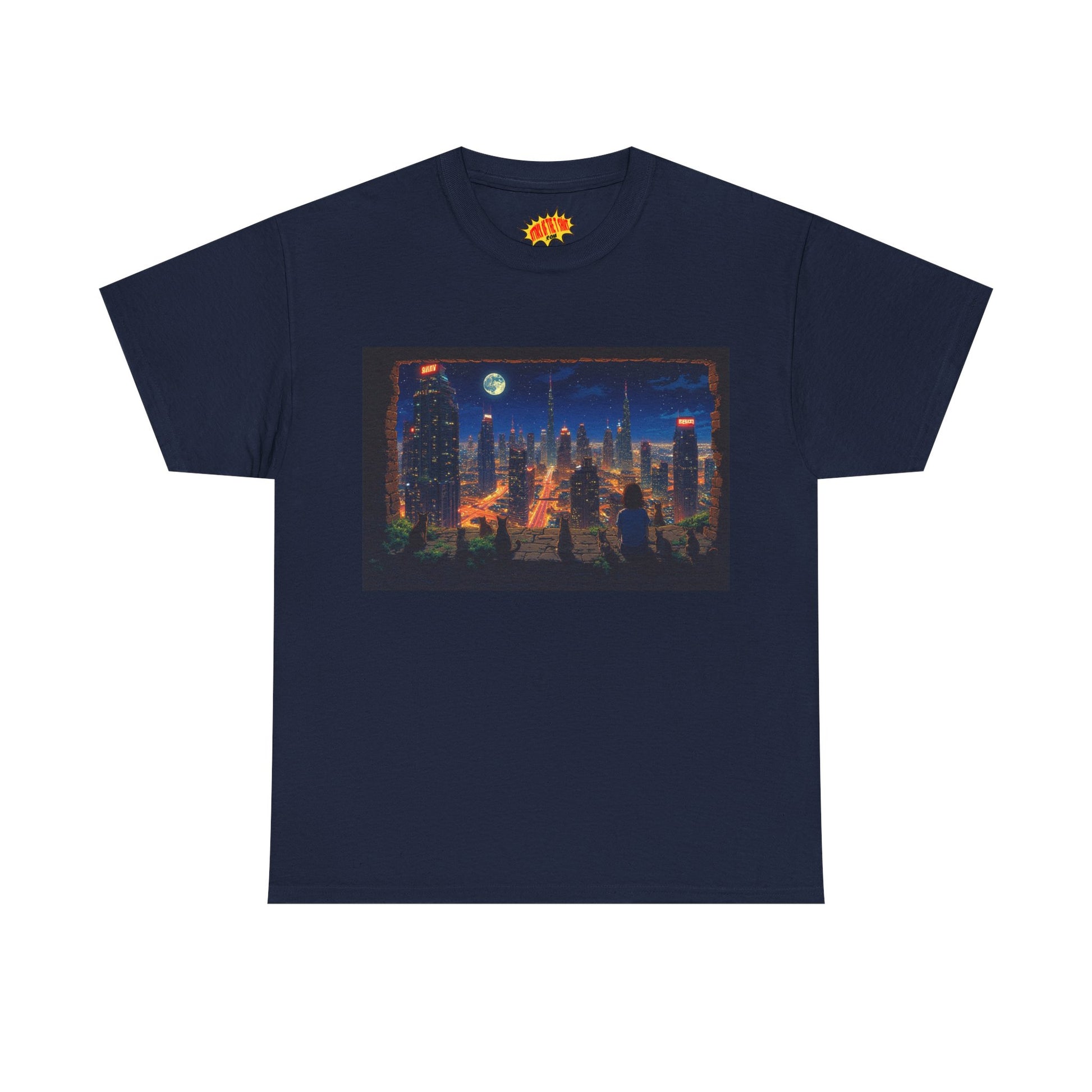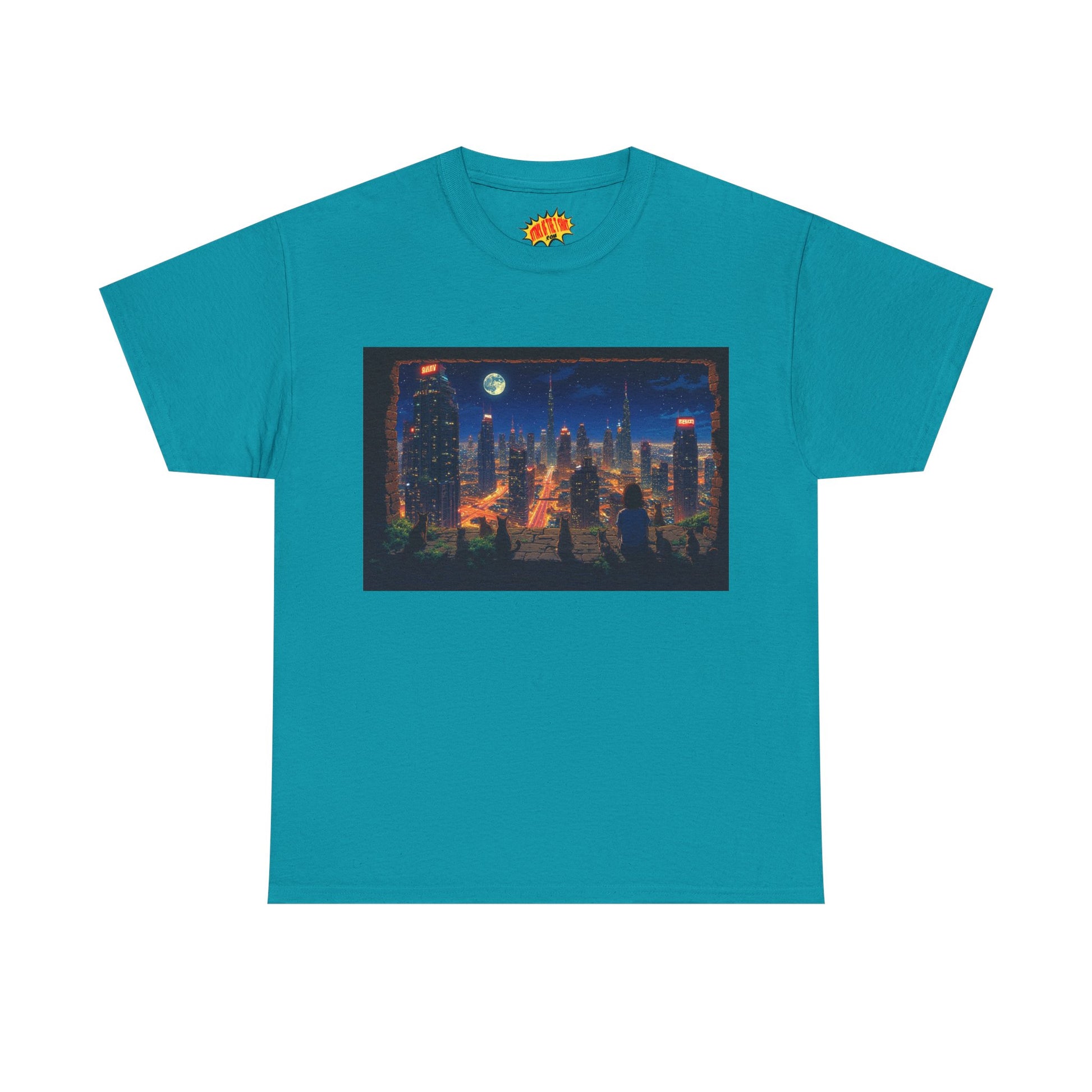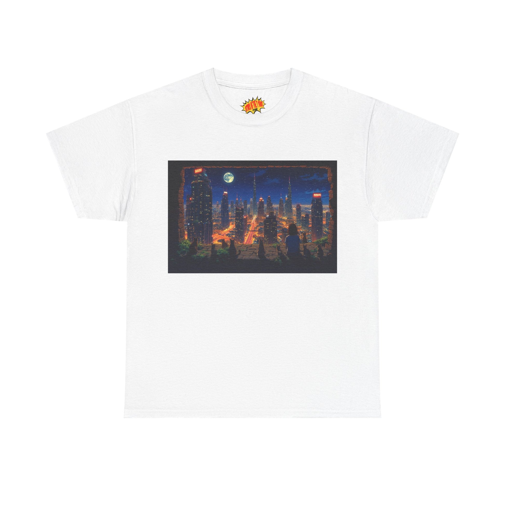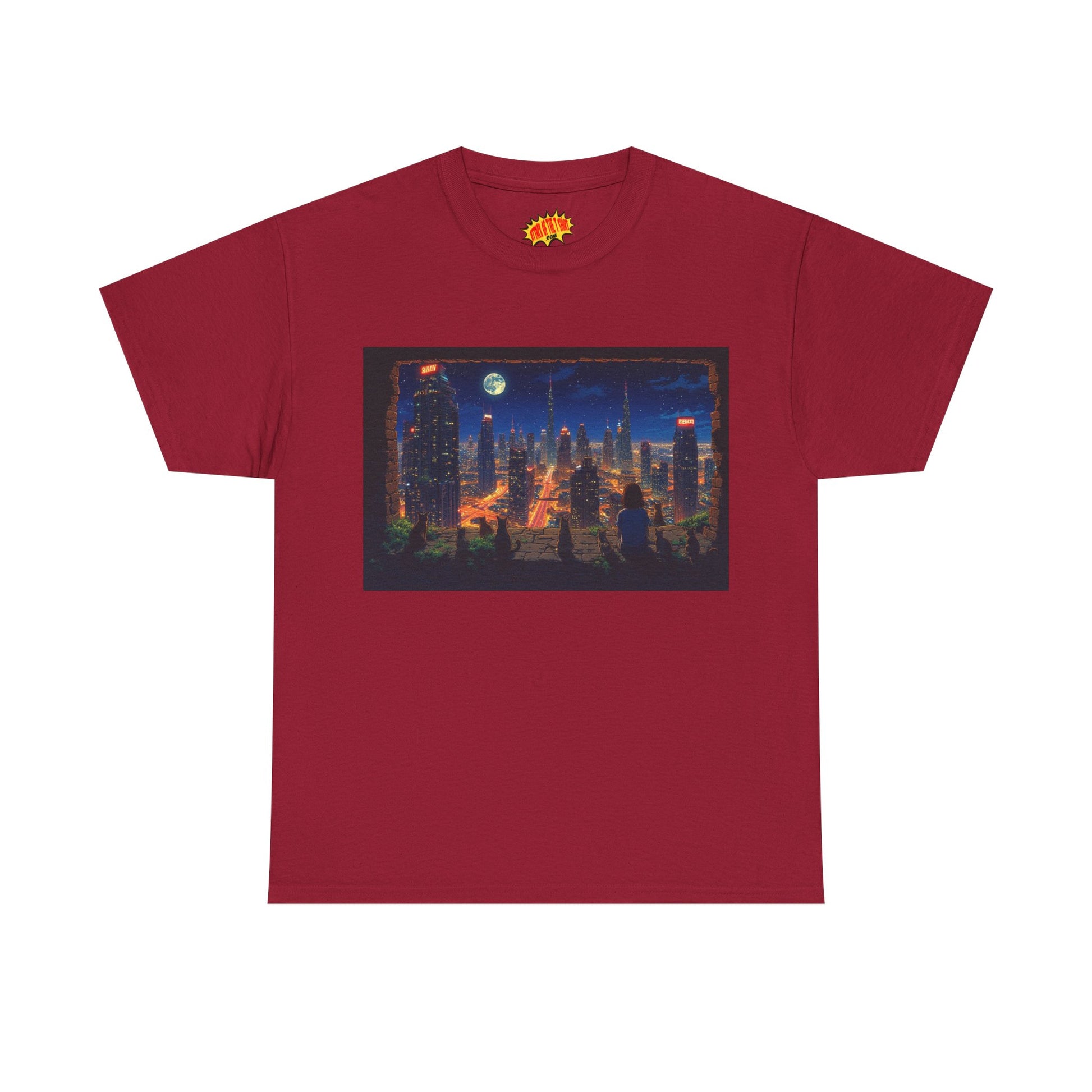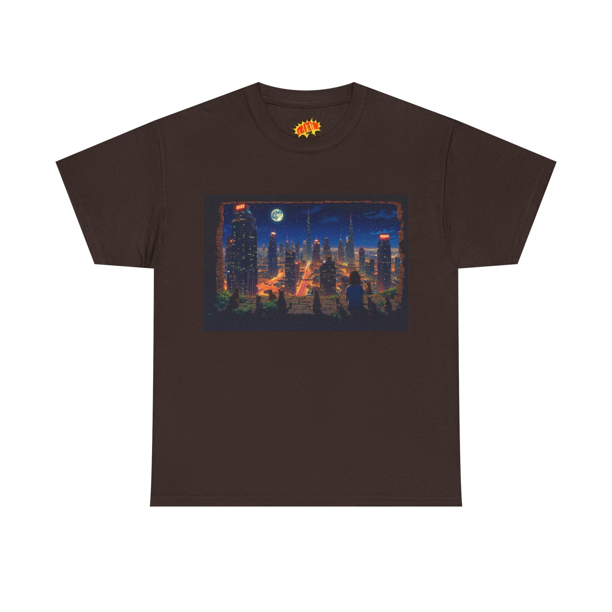 Neon Anime Cityscape Full Moon w/Girl & Cats T-Shirt *Multiple Colors*