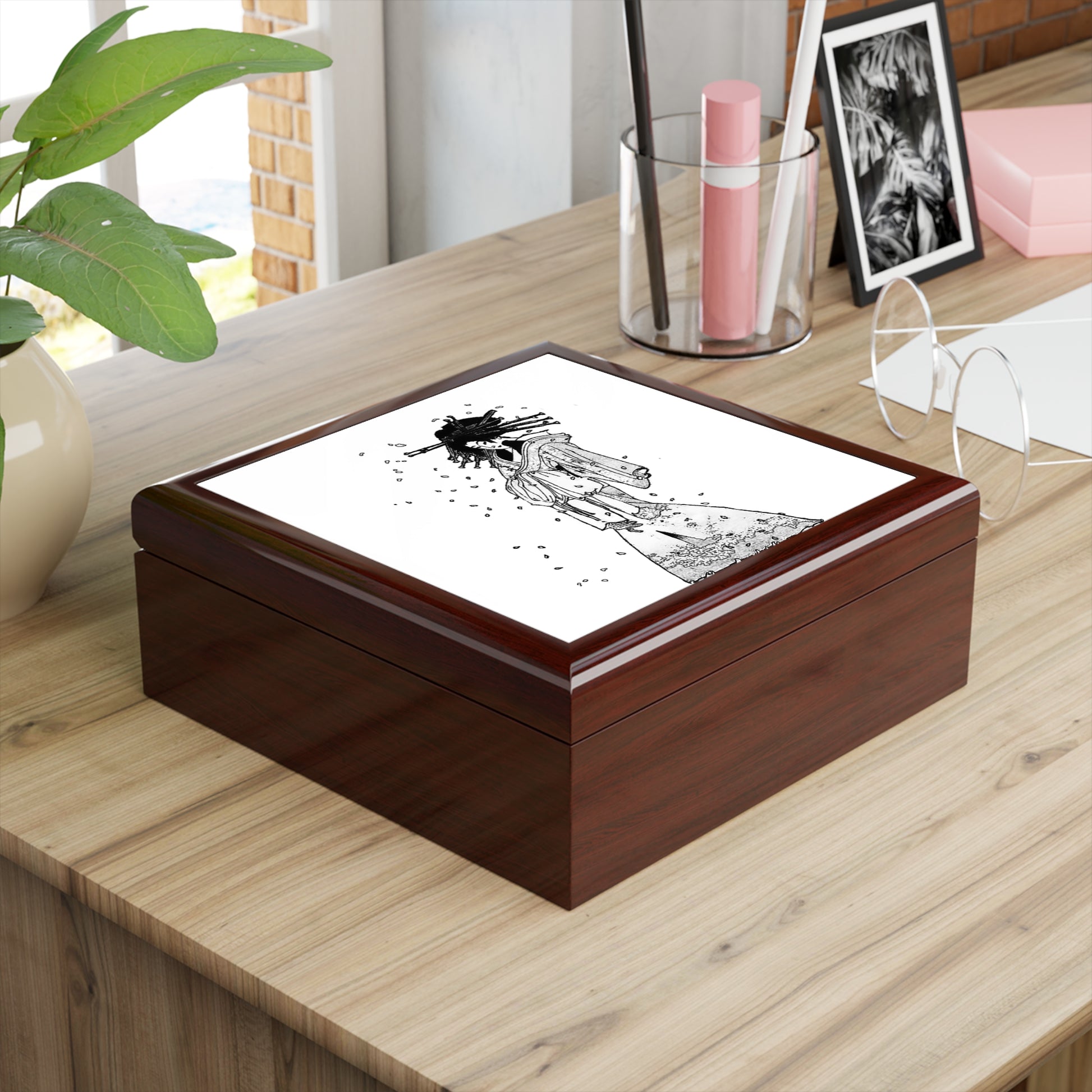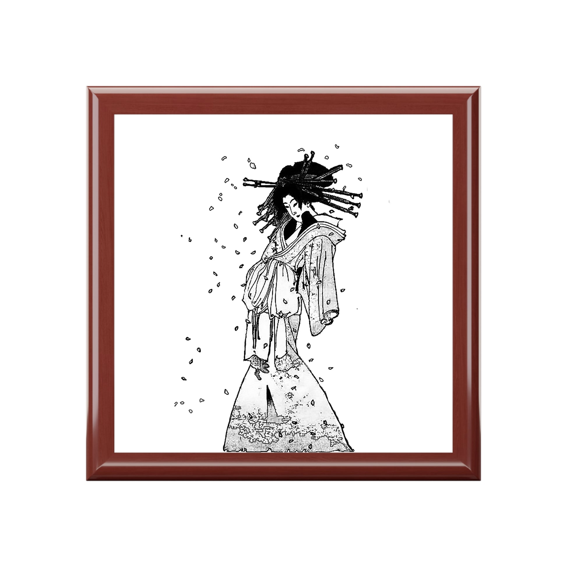 Keep all your valuables safe in custom style with this jewelry box featuring The Spirit of the Komachi Cherry Tree by Tsukioka Yoshitoshi. Available in multiple colors, this jewelry box features dual hinges which lock at 90 degrees, an elegant glossy finish, and a soft interior lined with felt material.
