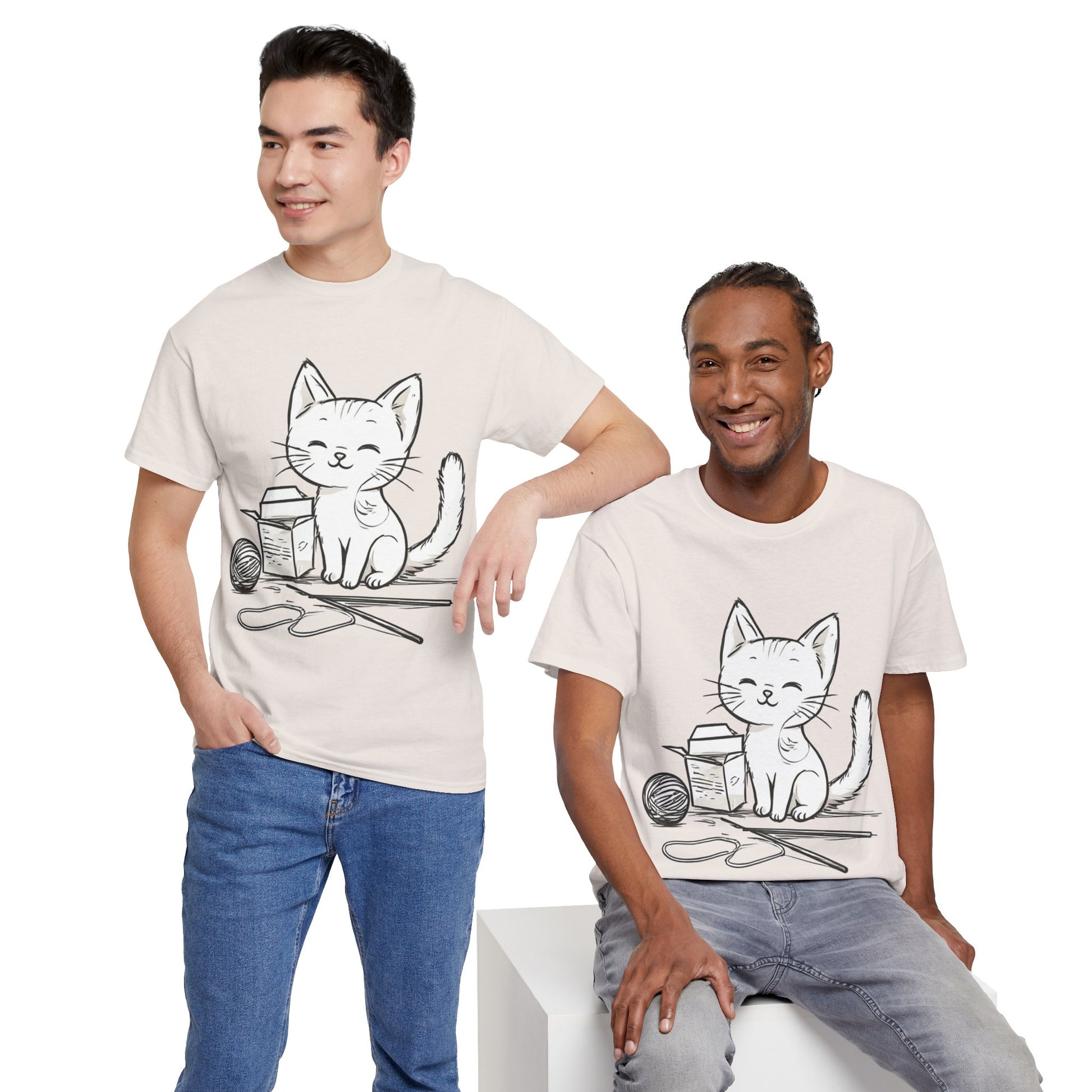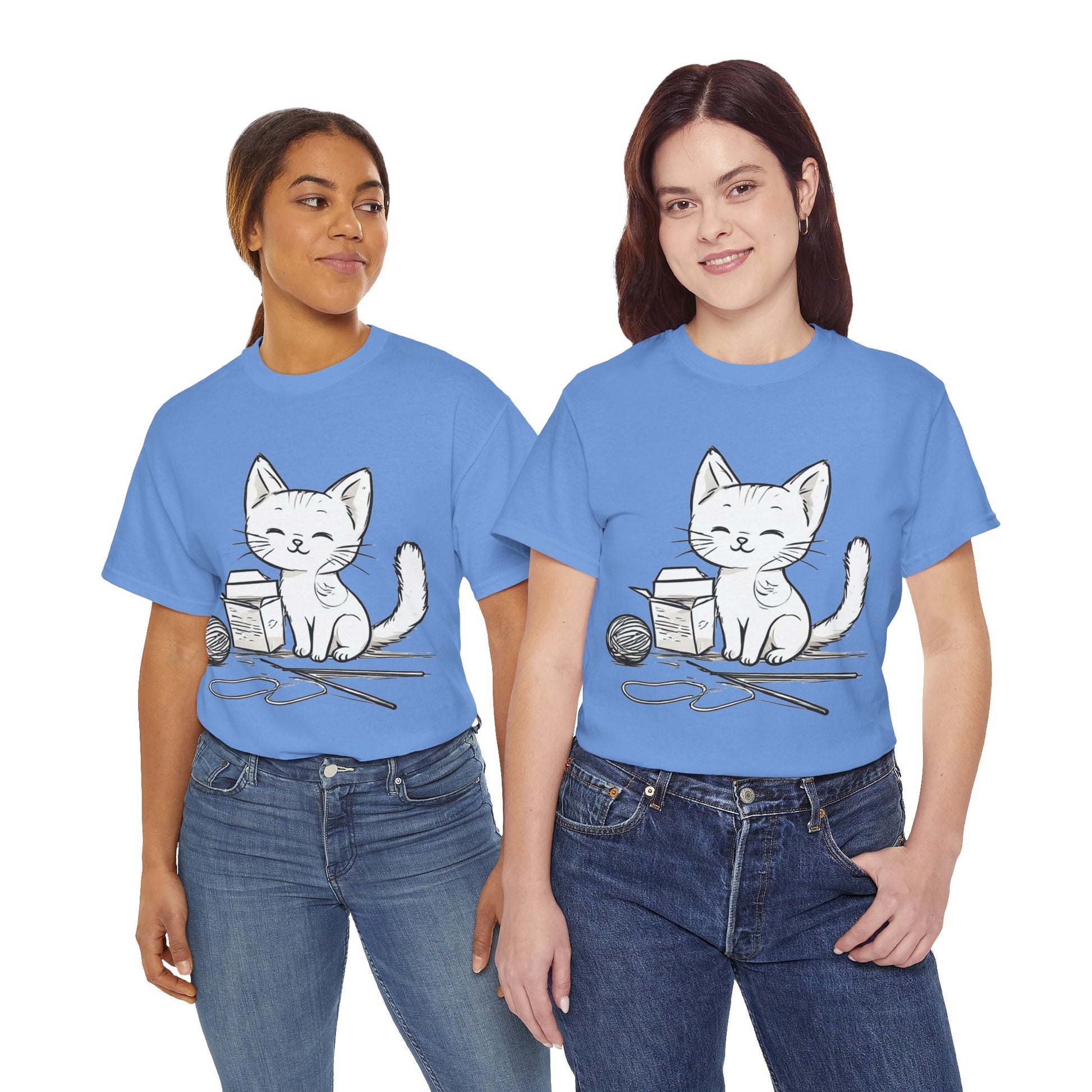 White Cat w/Takeout Yarn Art Tee Shirt *Multiple Colors*
