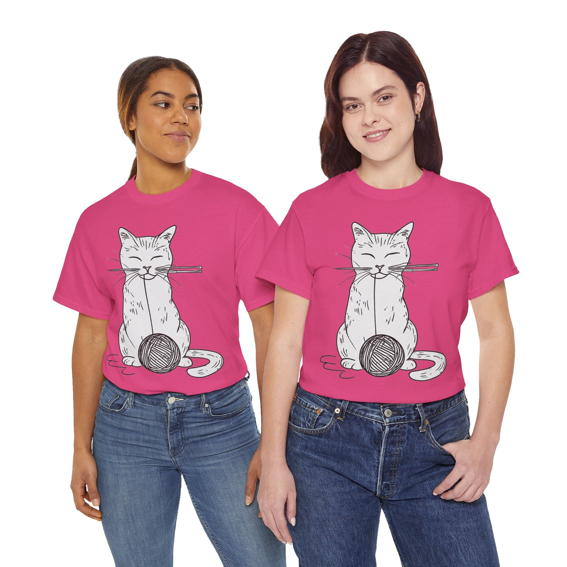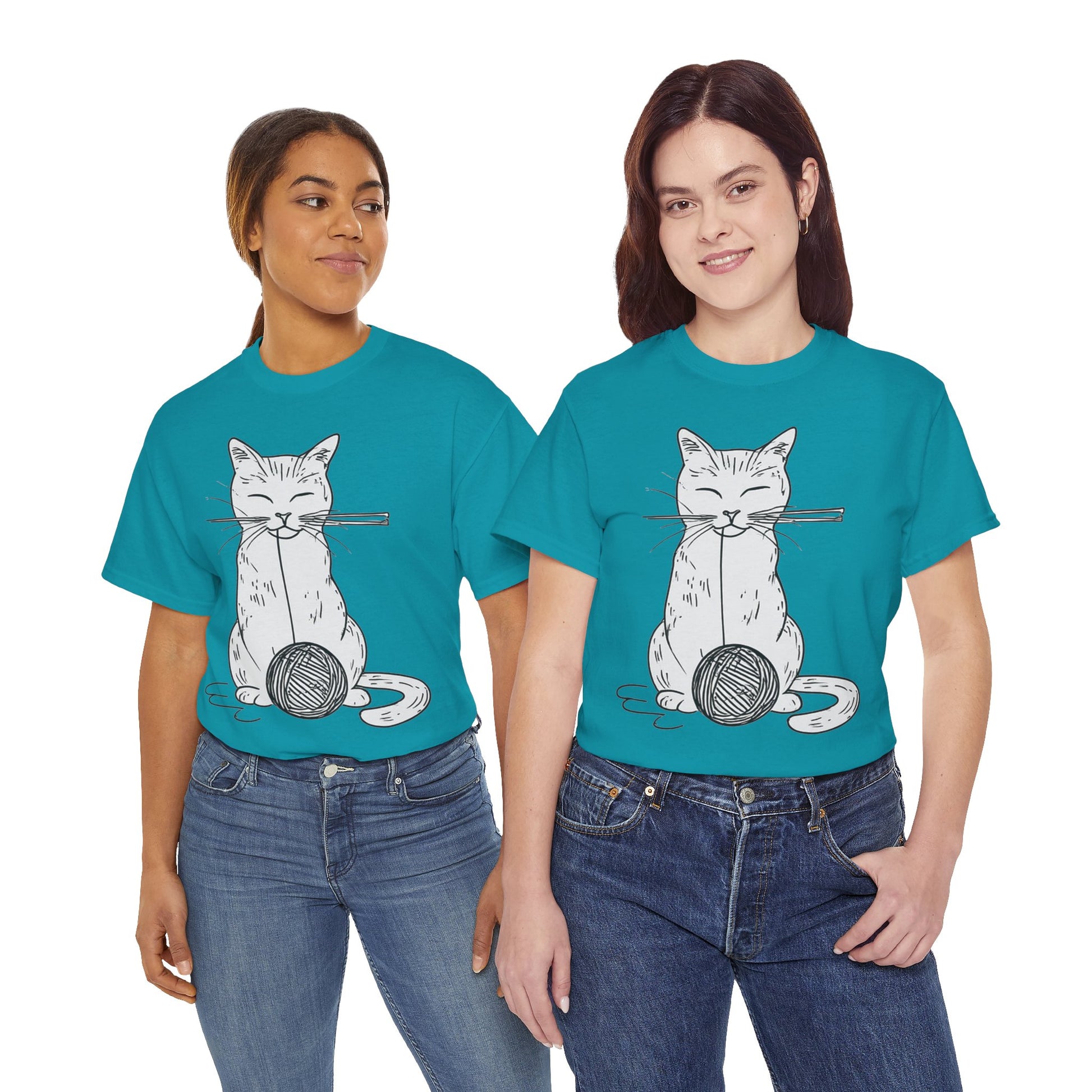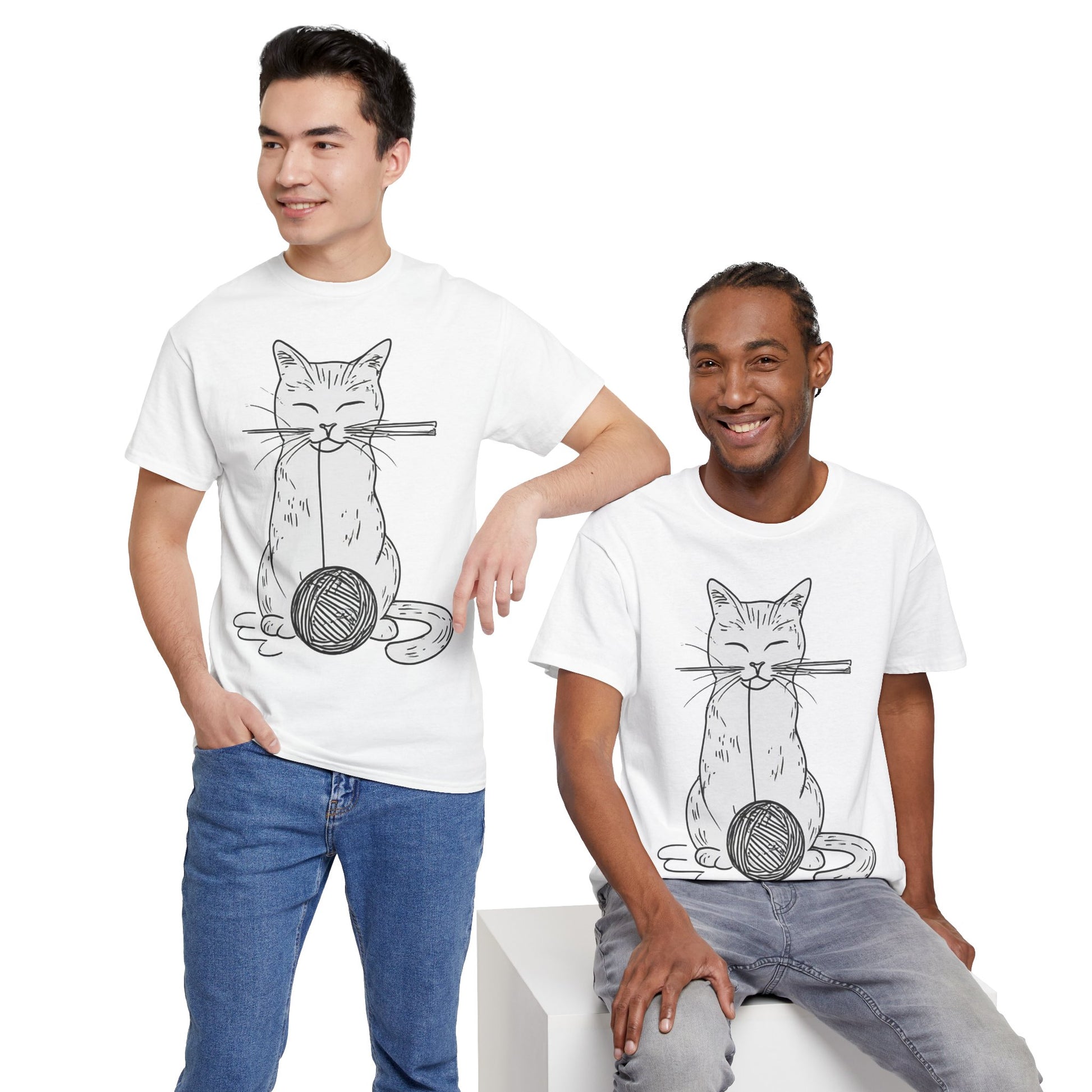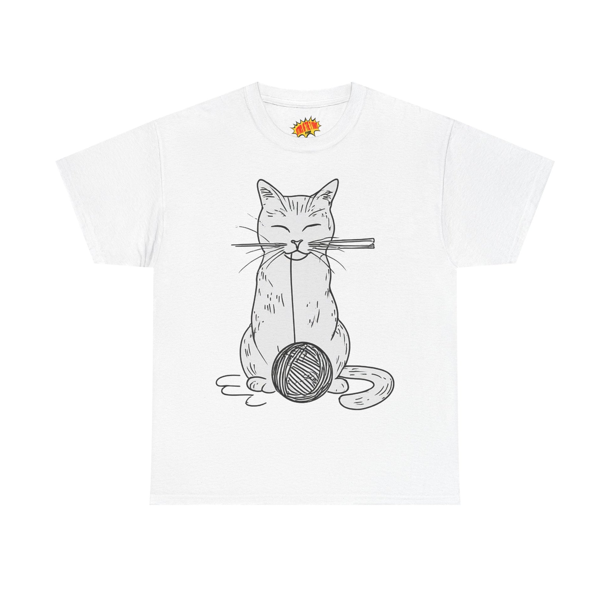 White Cat w/Yarn Ball Art Drawing Tee Shirt *Multiple Colors*