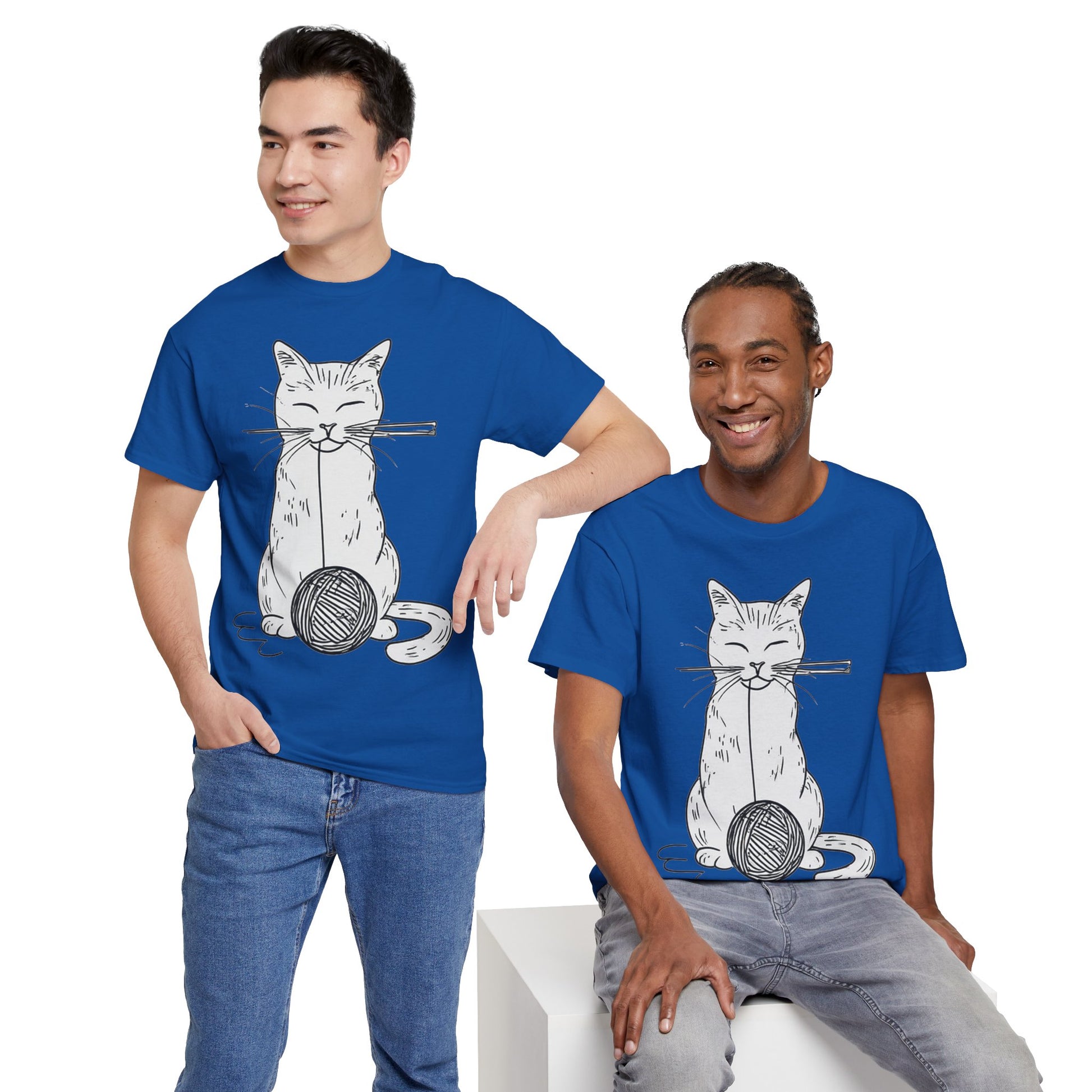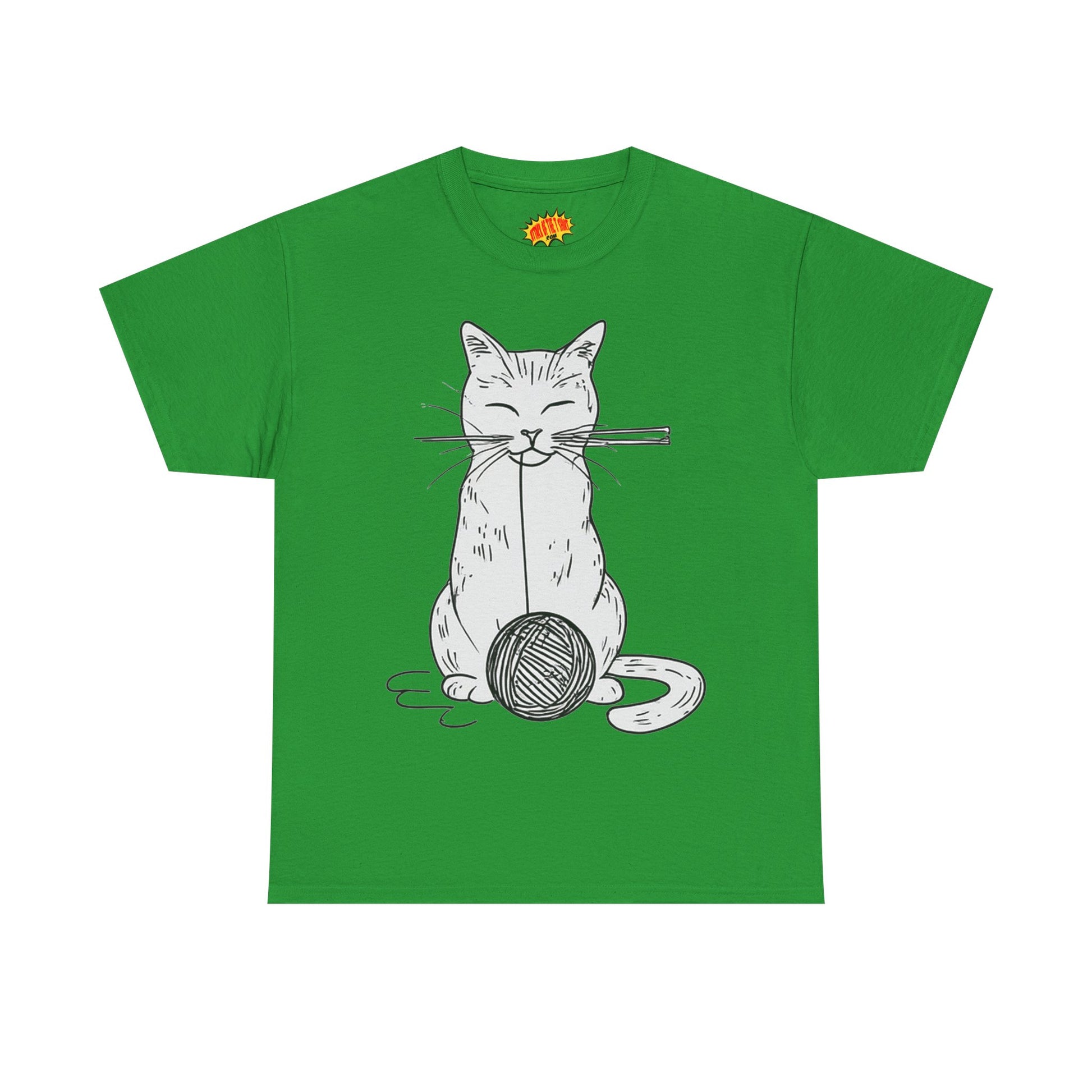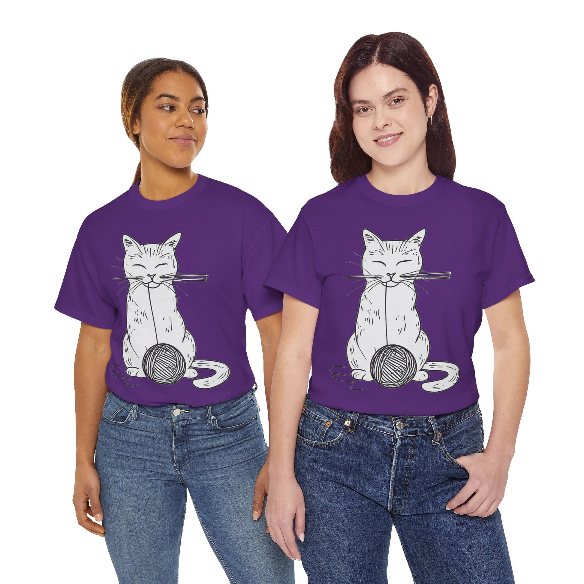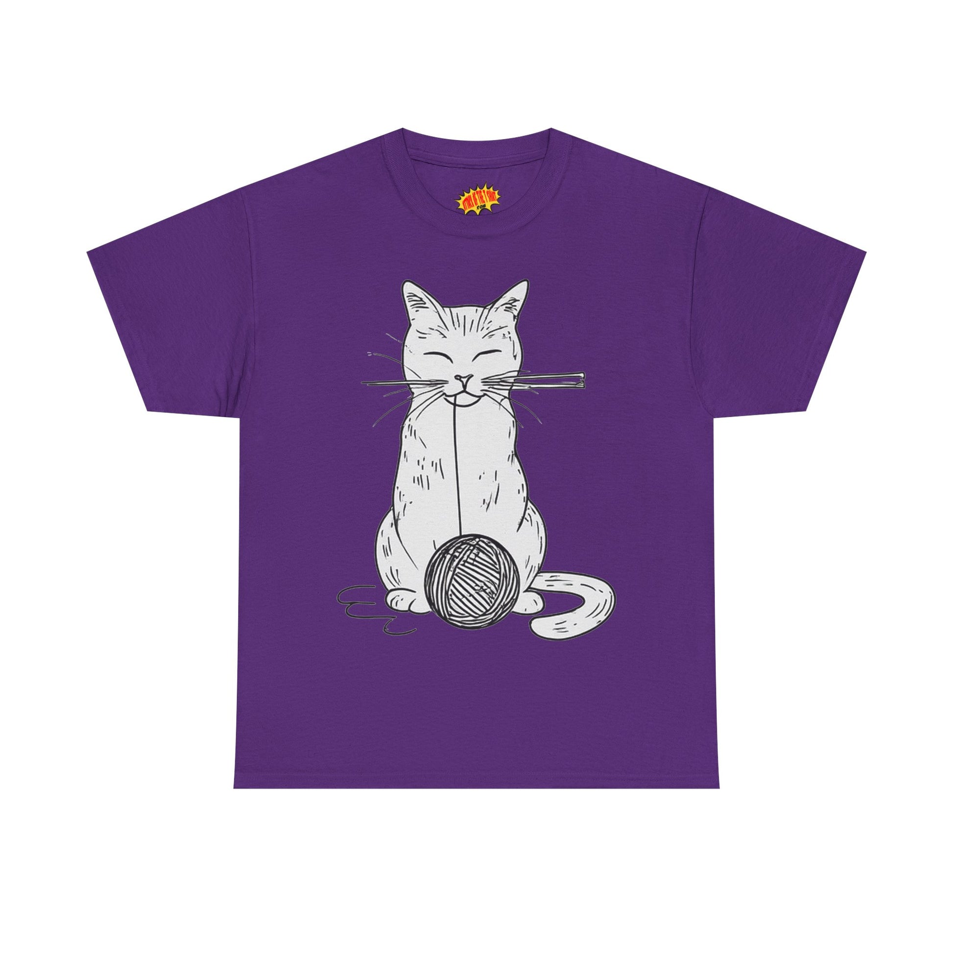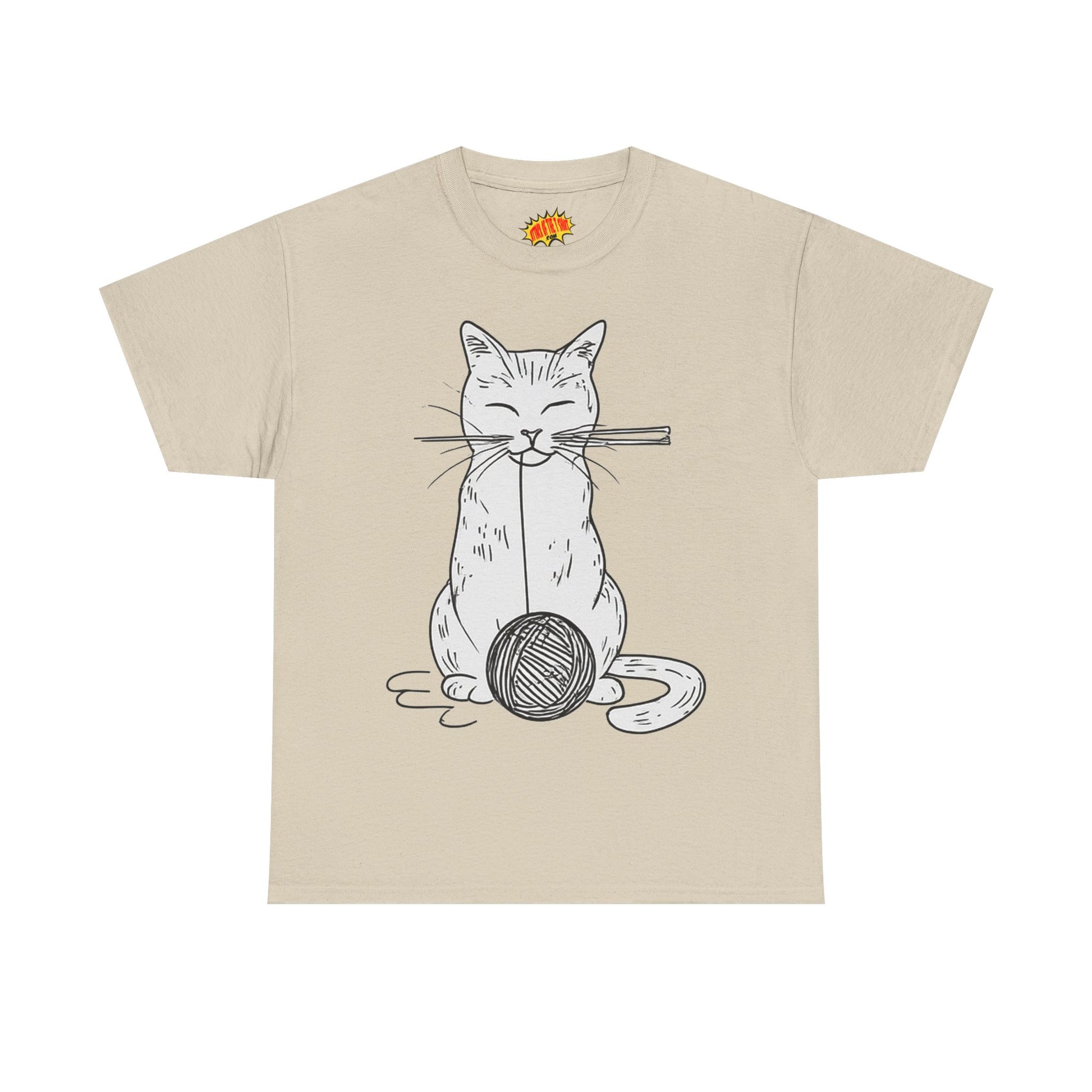 White Cat w/Yarn Ball Art Drawing Tee Shirt *Multiple Colors*