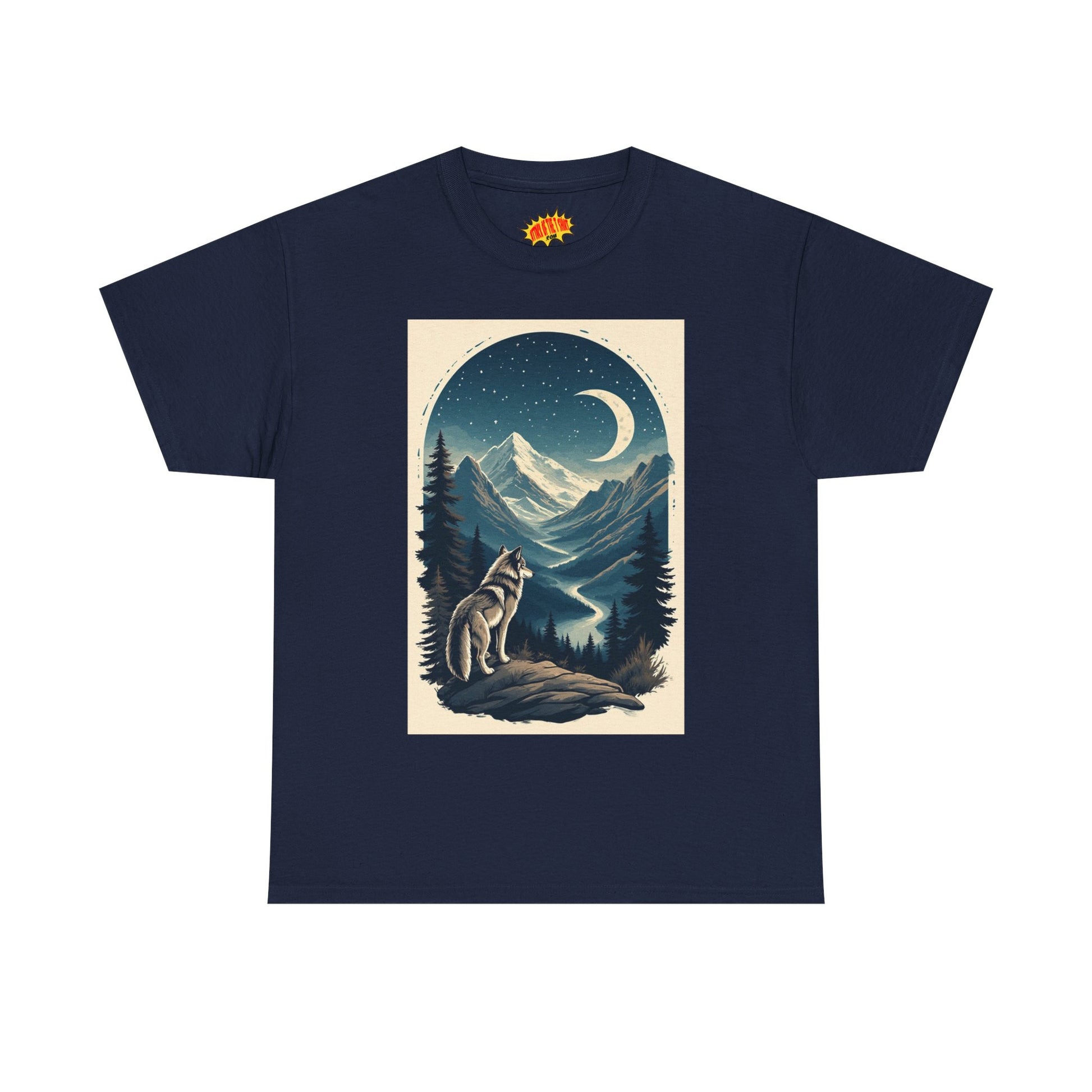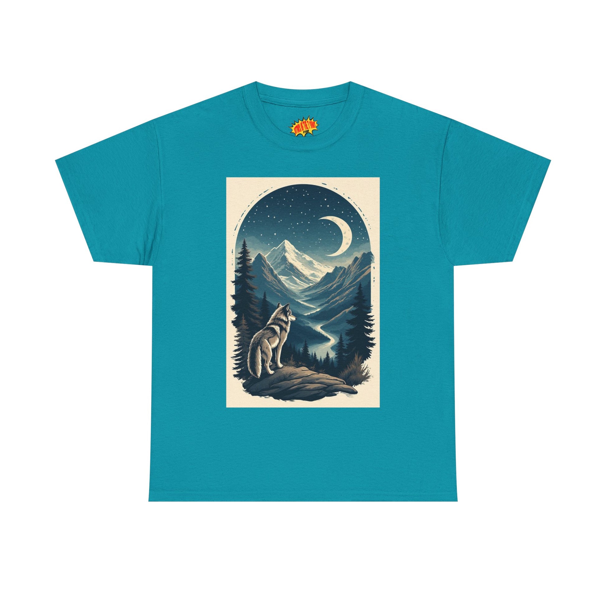 Wolf with Crescent Moon Scene T-Shirt *Multiple Colors*