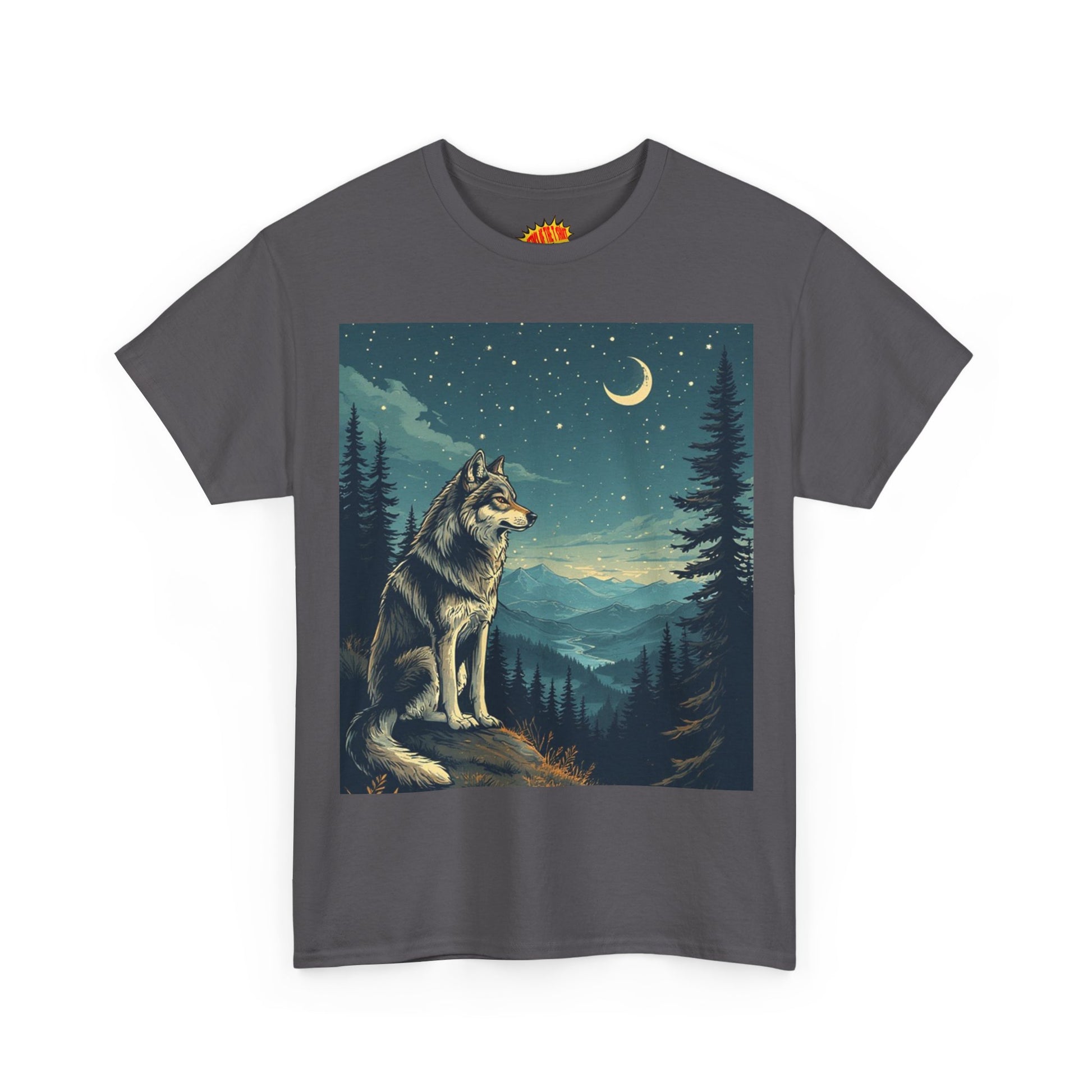 Wolf with Sliver Moon Scene T-Shirt *Multiple Colors*